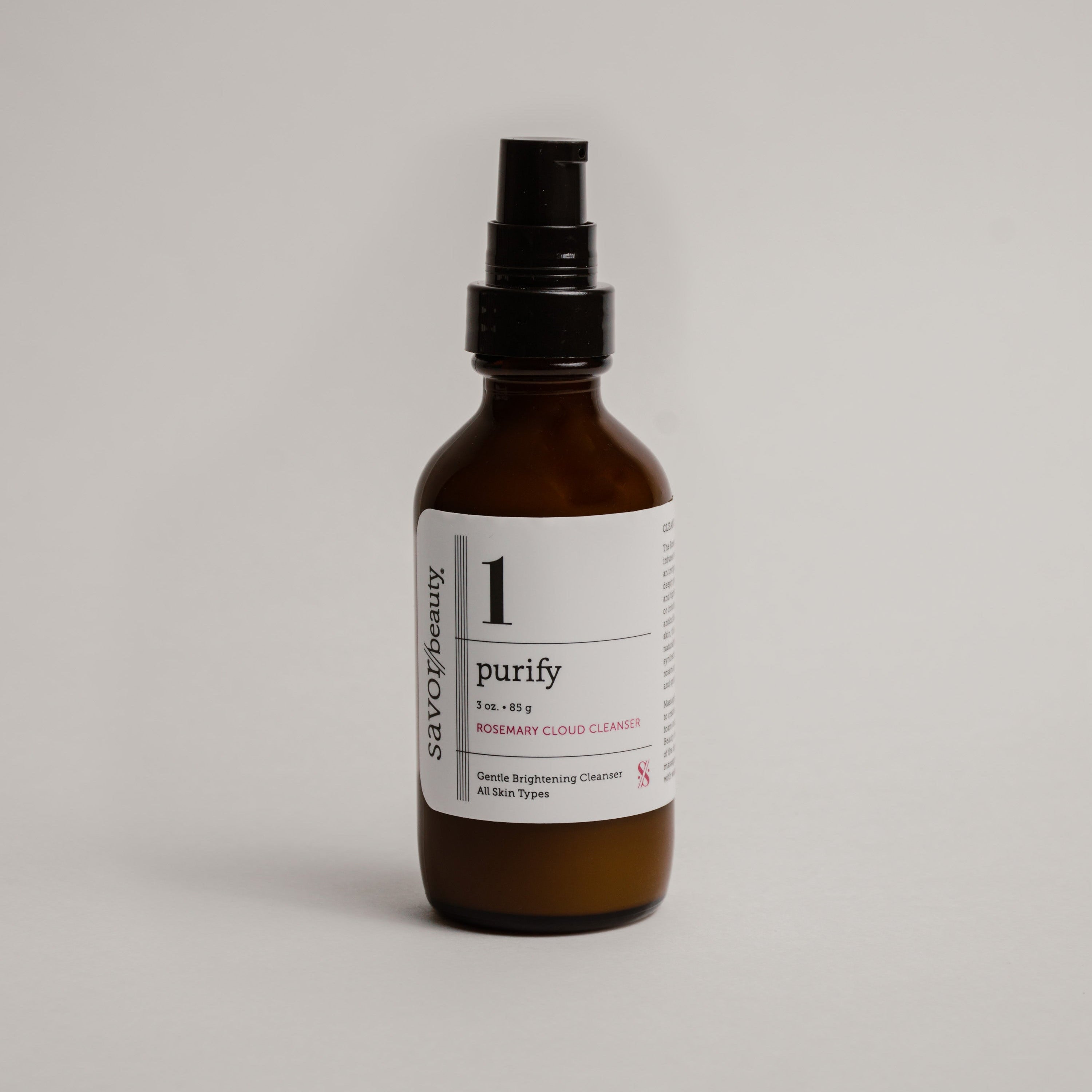 Massage 1-3 pumps vigorously in between palms to encourage a foamy cloud. Gently appl onto face (on top of a Savor Beauty cleansing oil, if using as part of the double-cleanse ritual) and begin massaging cleanser into skin. Remove with water, pat dry with clean towel. Follow with a Savor Beauty Toning Mist to rebalance skin's pH.